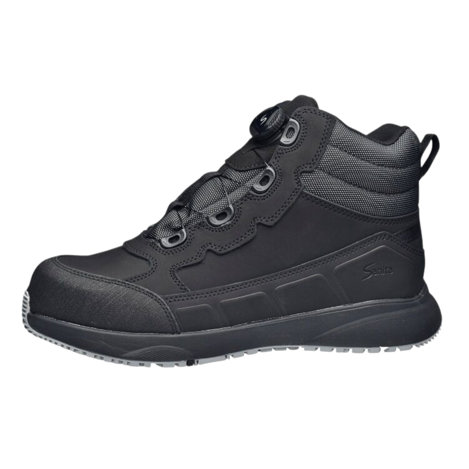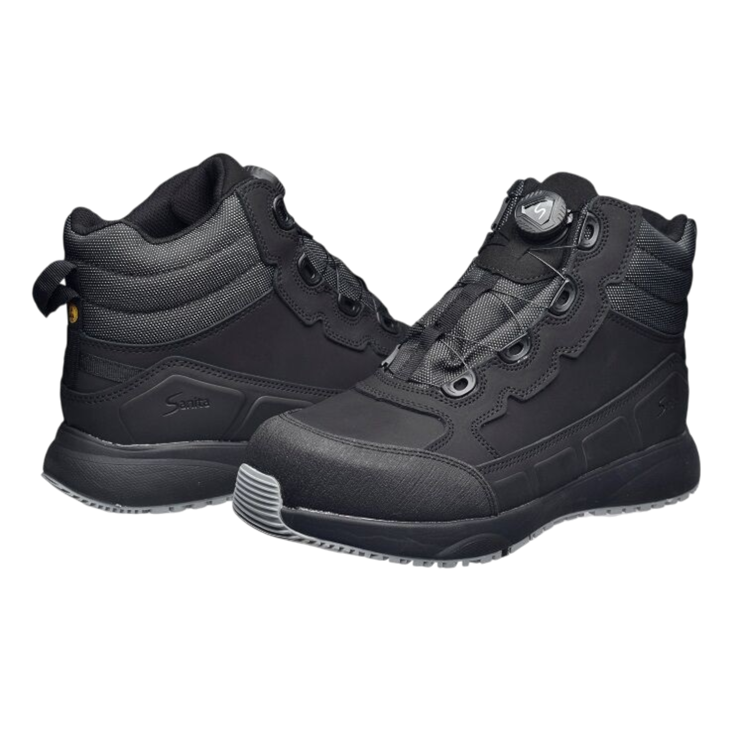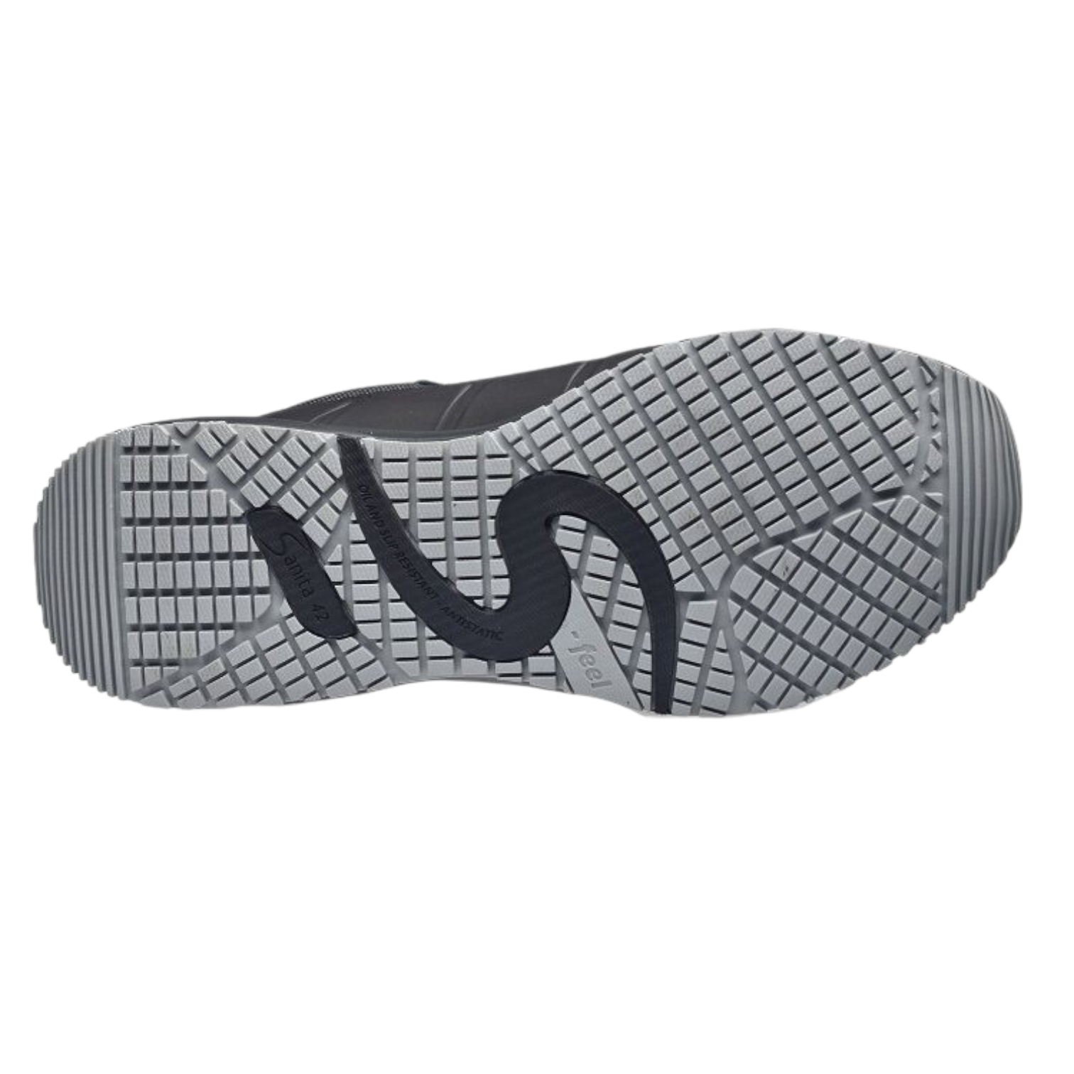A super-light safety shoe with an S-Lock lacing system and a comfortable fit. The upper is made of durable, waterproof nubuck leather and a breathable San Dry membrane. The safety shoe features composite toe protection, flexible fiber seam protection, and a reinforced toe cap for added durability. The EVA midsole offers both superior shock absorption and high rebound. The rubber outsole provides extremely high slip resistance.