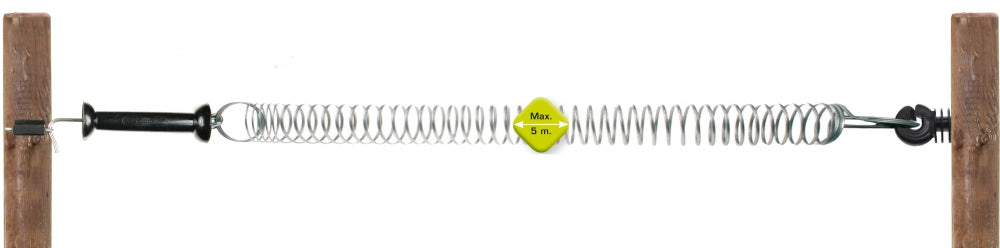 Juego de muelle de puerta compuesto por muelle helicoidal galvanizado (máx. 5mtr), manilla de puerta KOLTEC, anclaje de manilla de puerta y aislante para montaje. ATENCIÓN: ¡No apto para caballos!