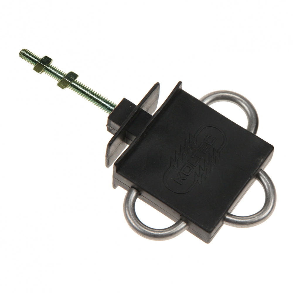 Ancrages simples mais très solides en acier inoxydable/INOX pour poignées de portail de KOLTEC avec filetage M6, convenant aux poteaux métalliques. Conception à 3 voies où le métal des œillets d'accrochage passe par l'intérieur et transmet la tension.