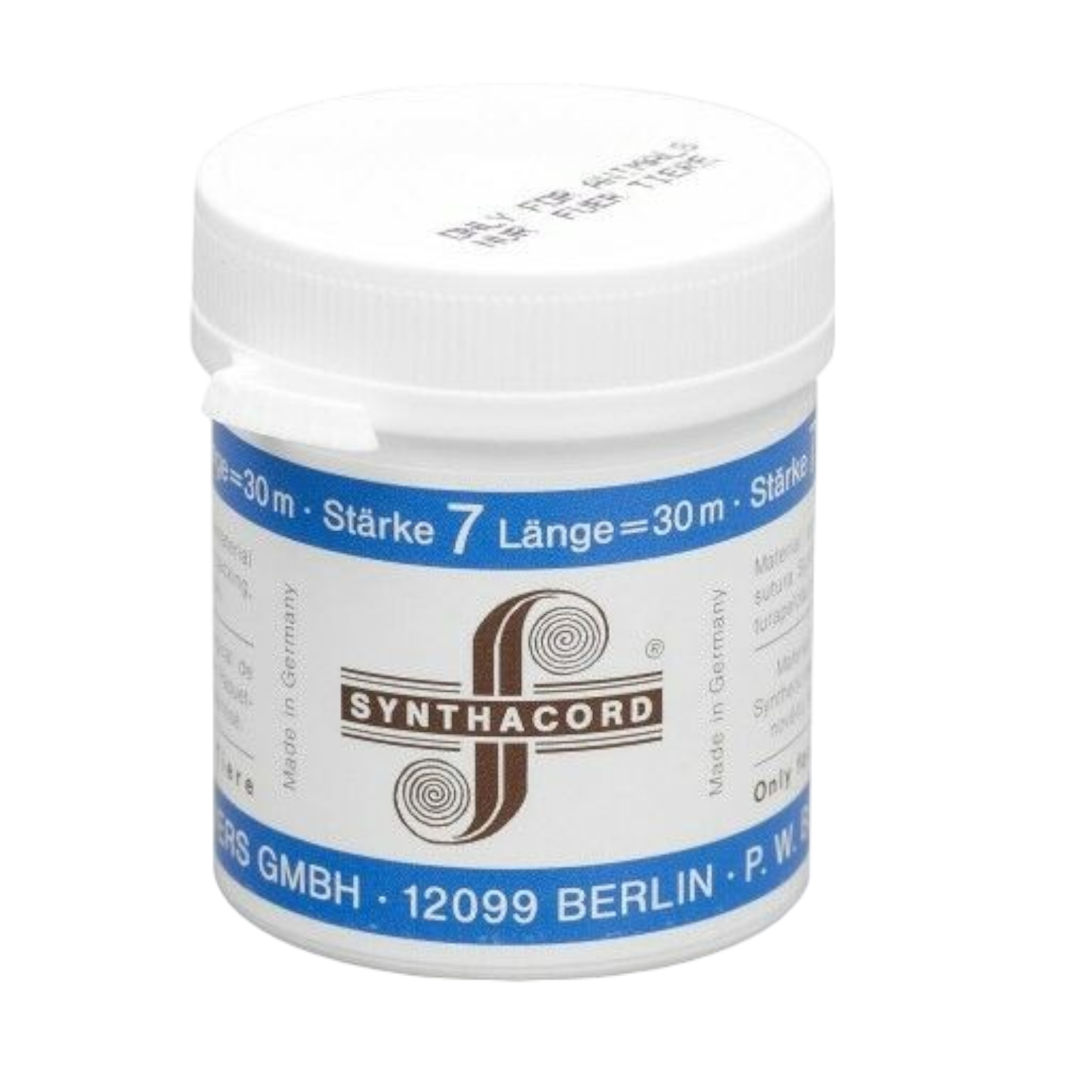 Gevlochten polyester, wit zeer soepele draad. Alleen voor huidhechting. 30 meter. Niet steriel in plastic potje.