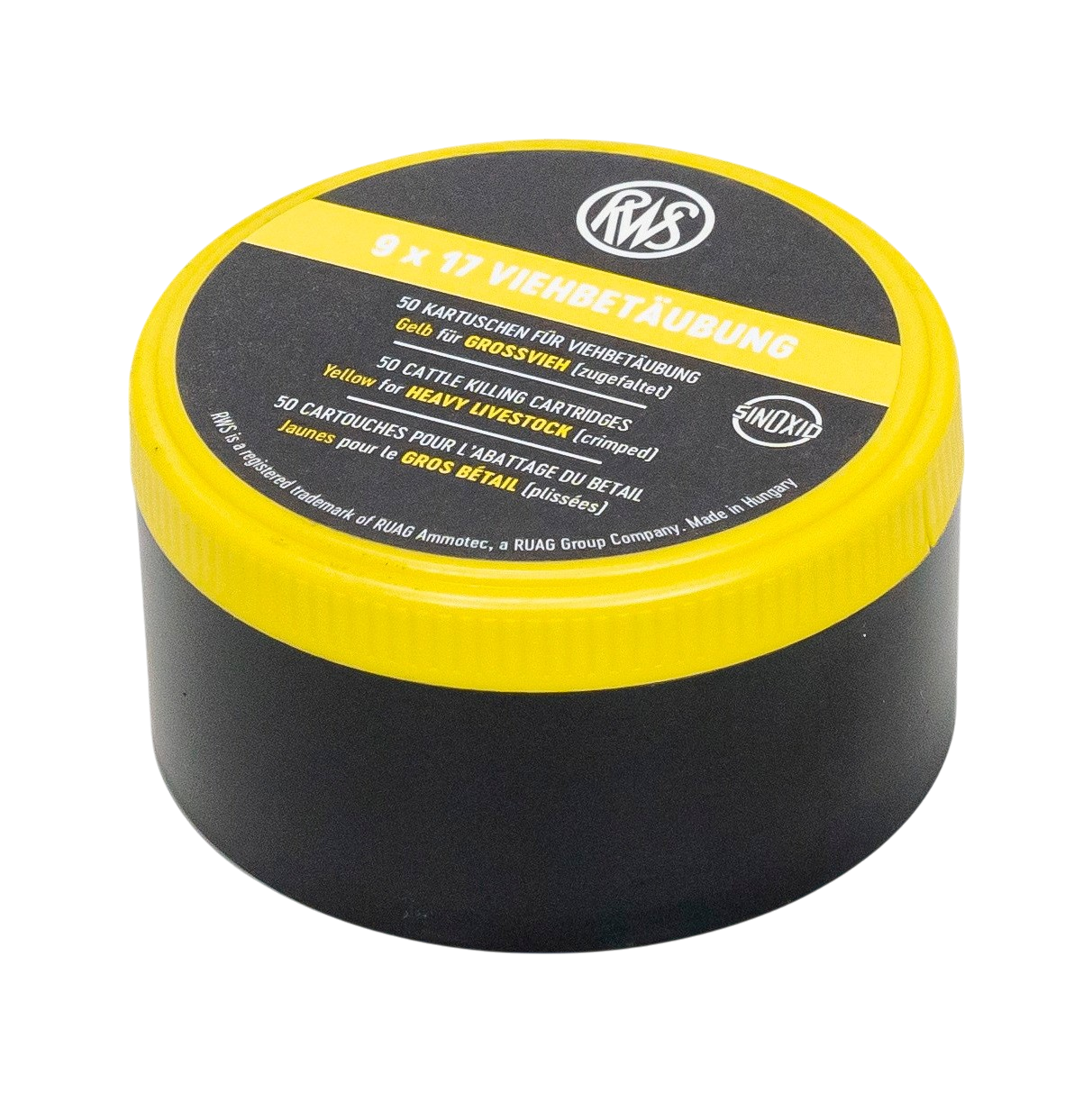 De patronen zorgen voor een ontlading zodat het schietmasker in werking treedt. Het binnendringen van de slagpen initieert een drukgolf waardoor het dier definitief wordt verdoofd, waardoor het dier pijnloos kan worden geslacht.