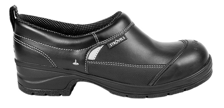 Deze Thor veiligheidsklomp komt uit de Skyld collectie van Strövels. De klompen zijn gemaakt van volnerf leder dat vuil- en waterafstotend is. De voering is ademend en de loopzool is gemaakt van schokabsorberend PU.