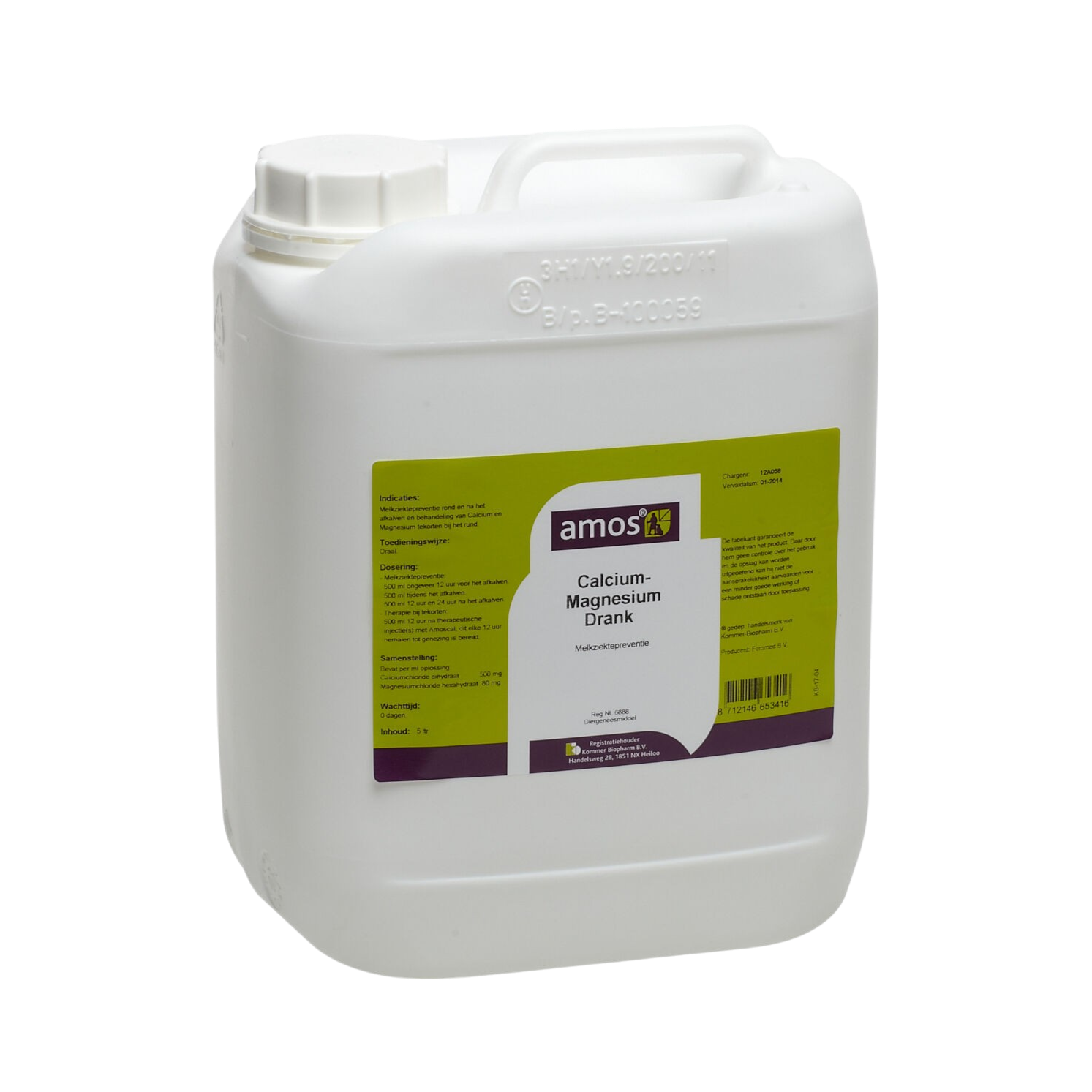 Amos Calcium Magnesium Drank is een vloeistof die oraal wordt toegedient ter preventie van melkziekte bij koeien rondom en na het afkalven. Daarnaast is Amos Calcium Magnesium Drank in te zetten bij van calcium- en magnesiumtekorten bij koeien.