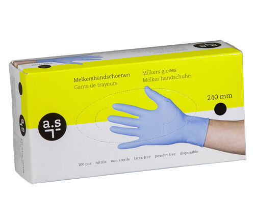 De a.s Melkershandschoenen zijn sterk, poeder- en latexvrij en vervaardigd uit nitril.