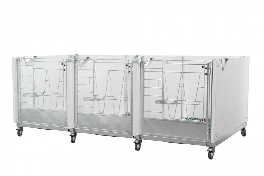 Verrijdbare kalverbox, incl. zwenkwielen en twee uitneembare tussenwanden. 160 x 300 cm