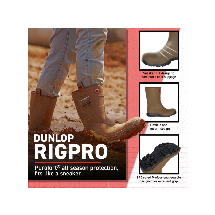 De Dunlop Purofort RigPRO Full Safety laars is een duurzame, sterke laars ontworpen voor uitstekende grip in buitenomstandigheden.
