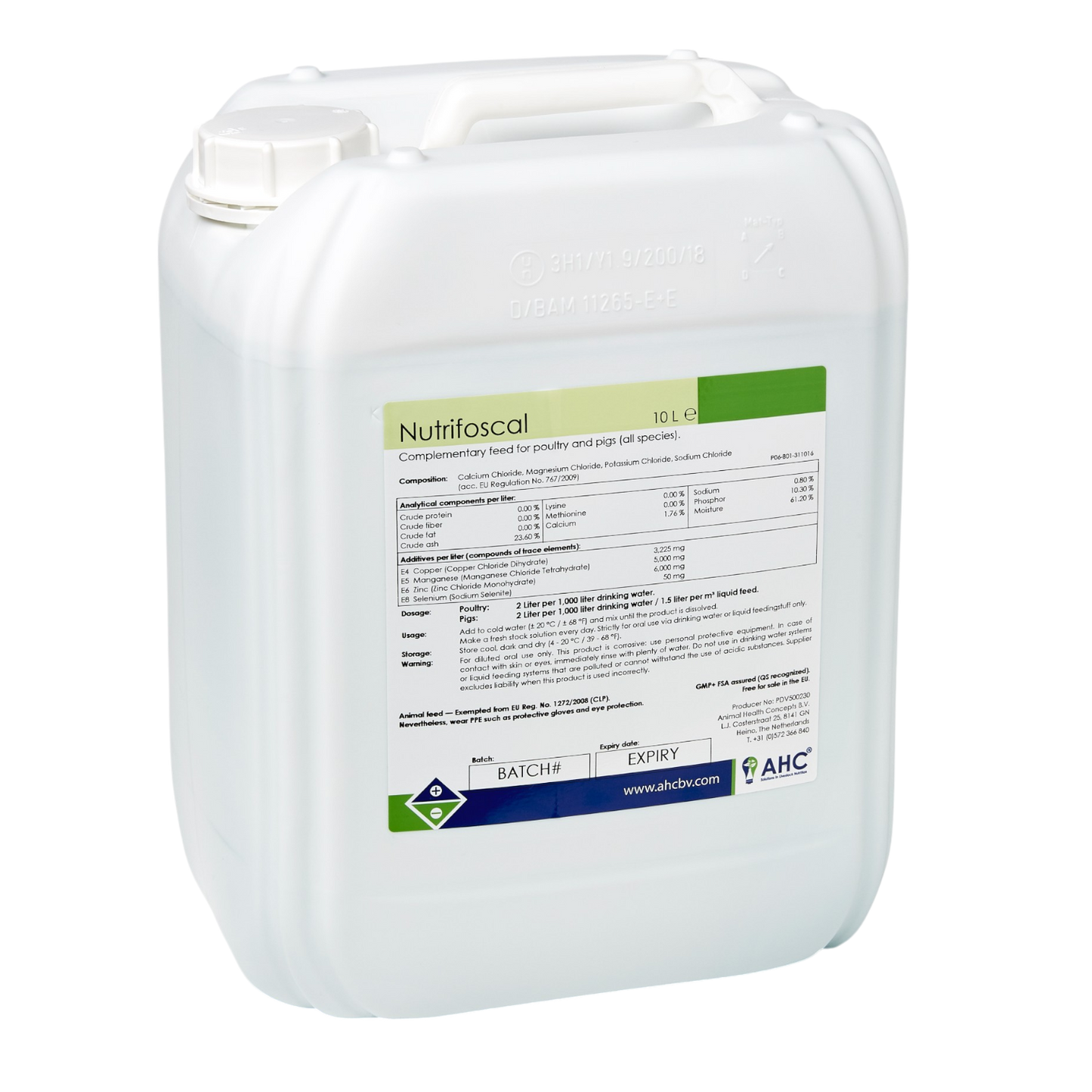 Nutrifoscal is een aanvullend diervoeder met een uitgebalanceerde combinatie Van zuren, mineralen, spoorelementen en elektrolyten.