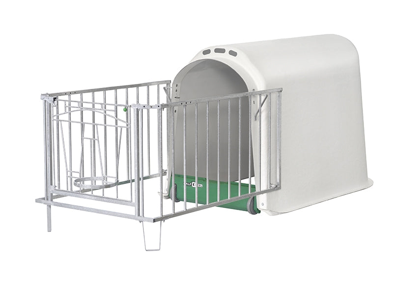 De CalfOTel® Plus met hekwerk is ontworpen voor de buitenopfok van kalveren van 0 tot 6 weken oud. Met vergelijkbare hoogte als de CalfOTel® Small en extra lengte biedt het hok meer ruimte en beschutting. De drie ventilatieopeningen zorgen voor een comfortabele ventilatie zonder tocht. Gemaakt van duurzaam glasvezelversterkt polyester, biedt dit kalverhok de kwaliteit die je van ons gewend bent. Het scharnierende hekwerk en de kantelbare hokoptie maken zowel reiniging als stroverversing moeiteloos.