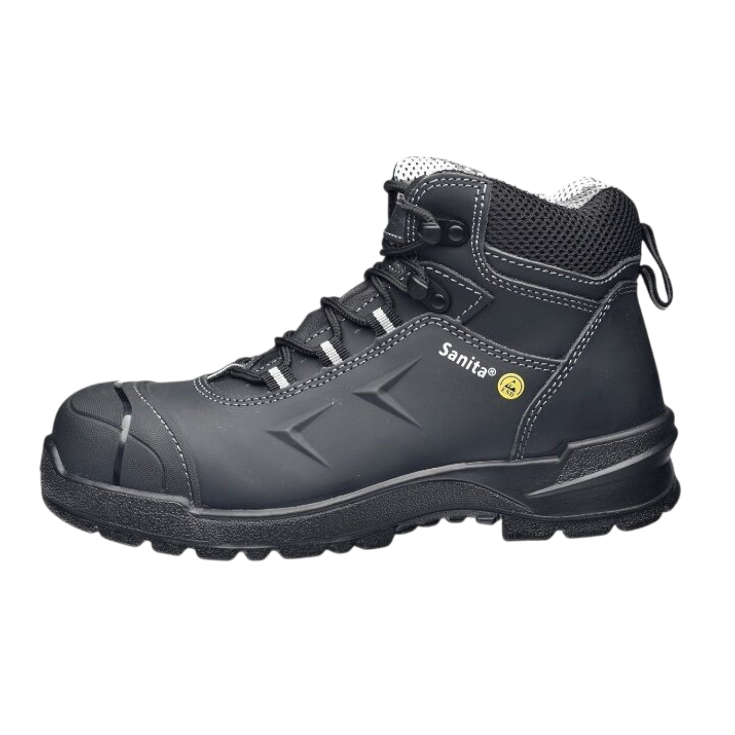 De Sanita Meteorite is een halfhoge S3 ESD veiligheidsschoen met veters. De schoen heeft een antislipzool (SRC), een aluminium veiligheidsneus, een antiperforatie tussenzool en TPU kruipneus voor extra veiligheid. Het antibacteriële EnerG Pro Memory voetbed met schokabsorptie zorgt voor een hoog niveau van comfort. De Sanita Meteorite is geschikt voor verschillende sectoren, zoals de industrie, (land)bouw en logistiek.