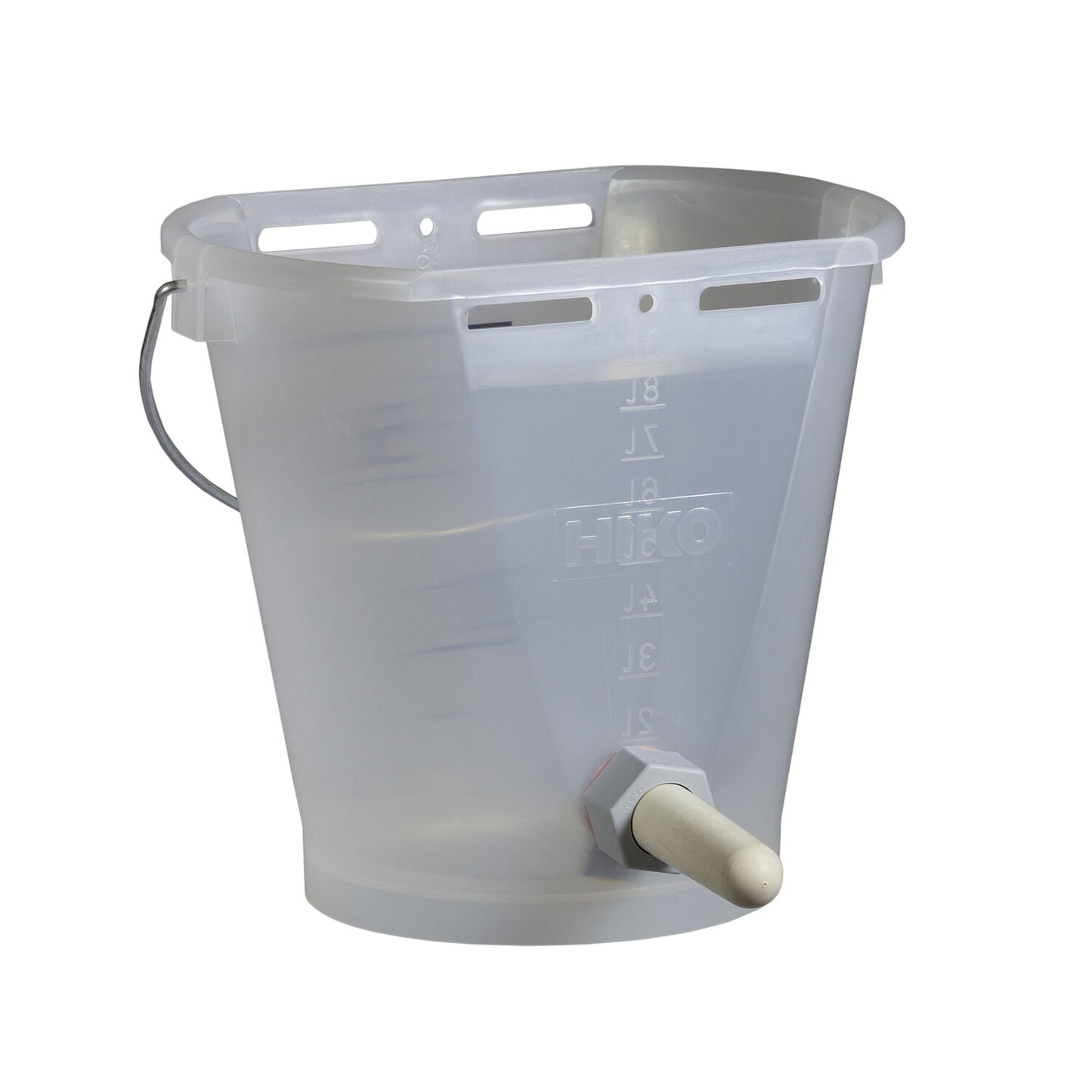 Praktische speenemmer van HIKO. Deze kwaliteitsemmer is gemaakt van hoogwaardig transparant kunststof en bedoeld voor het voeden van kalveren. Aan de buiten- en binnenzijde van de emmer is de maatvoering (8 L) goed af te lezen.